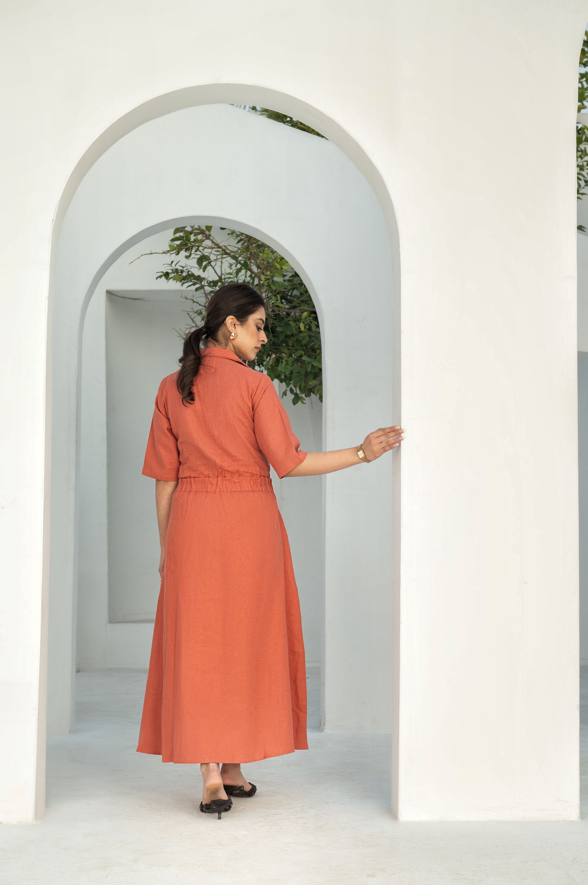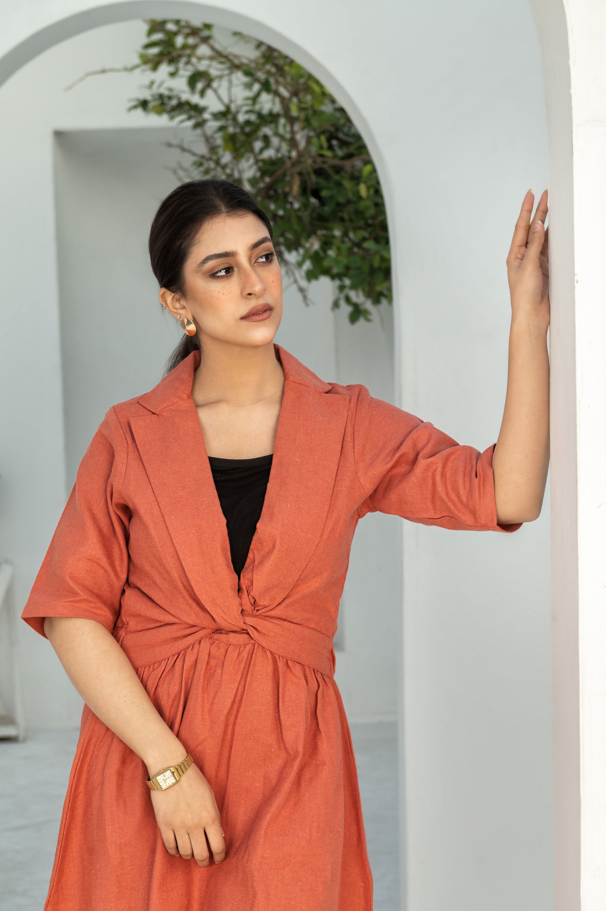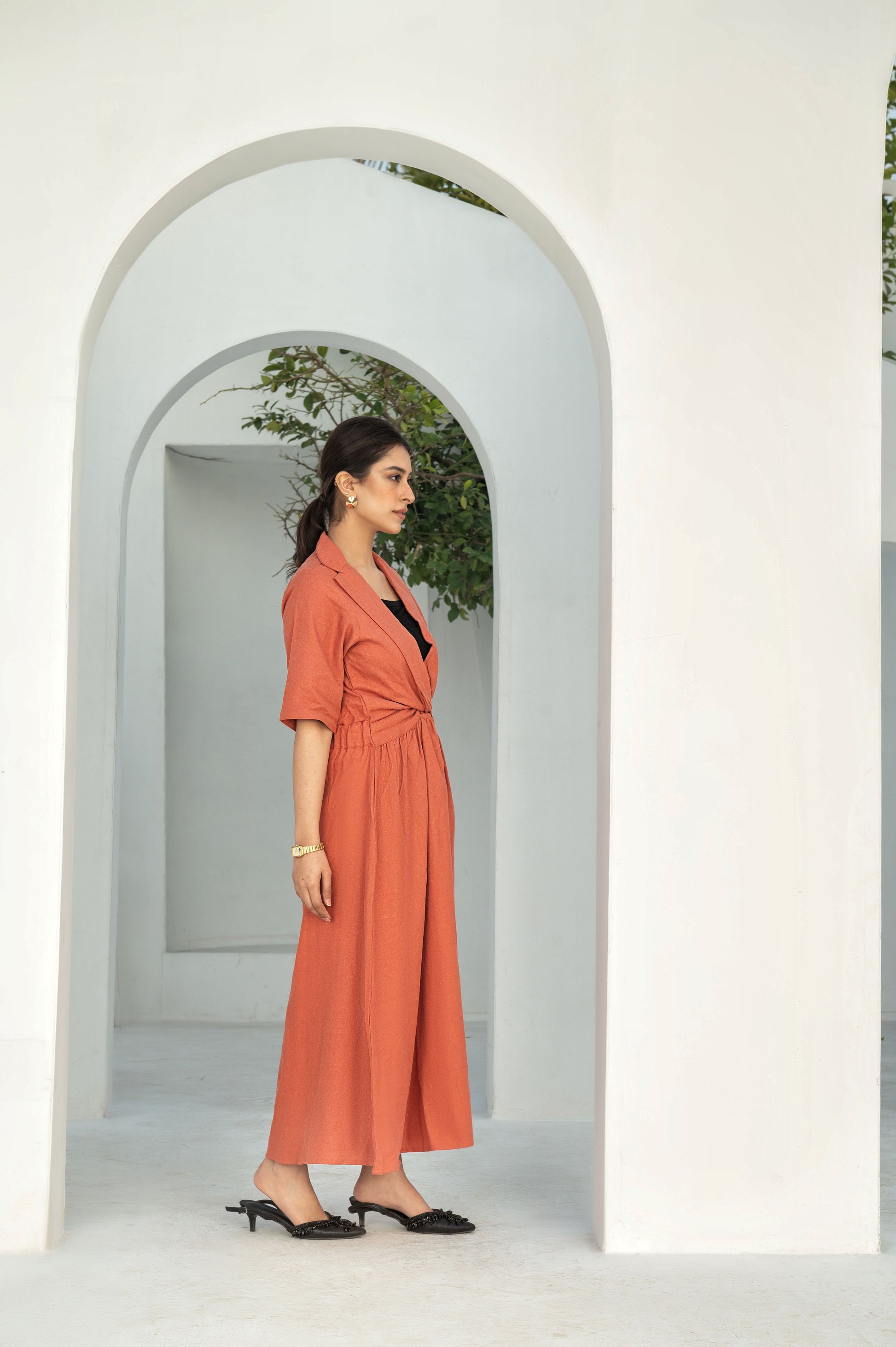 Expertly crafted from a premium irish cotton fabric, the Romance Midi Dress exudes relaxed and airy vibes with its cocoon shape and twisted wrap front. Its classic coat collar and v neckline add a touch of sophistication. Perfect for creating unforgettable memories in the springtime, this dress is a must-have in your wardrobe.