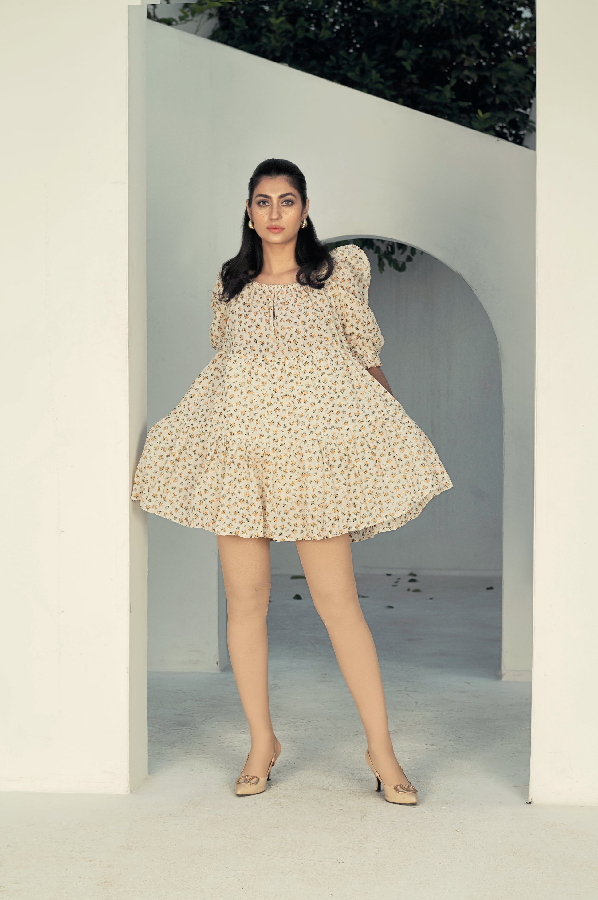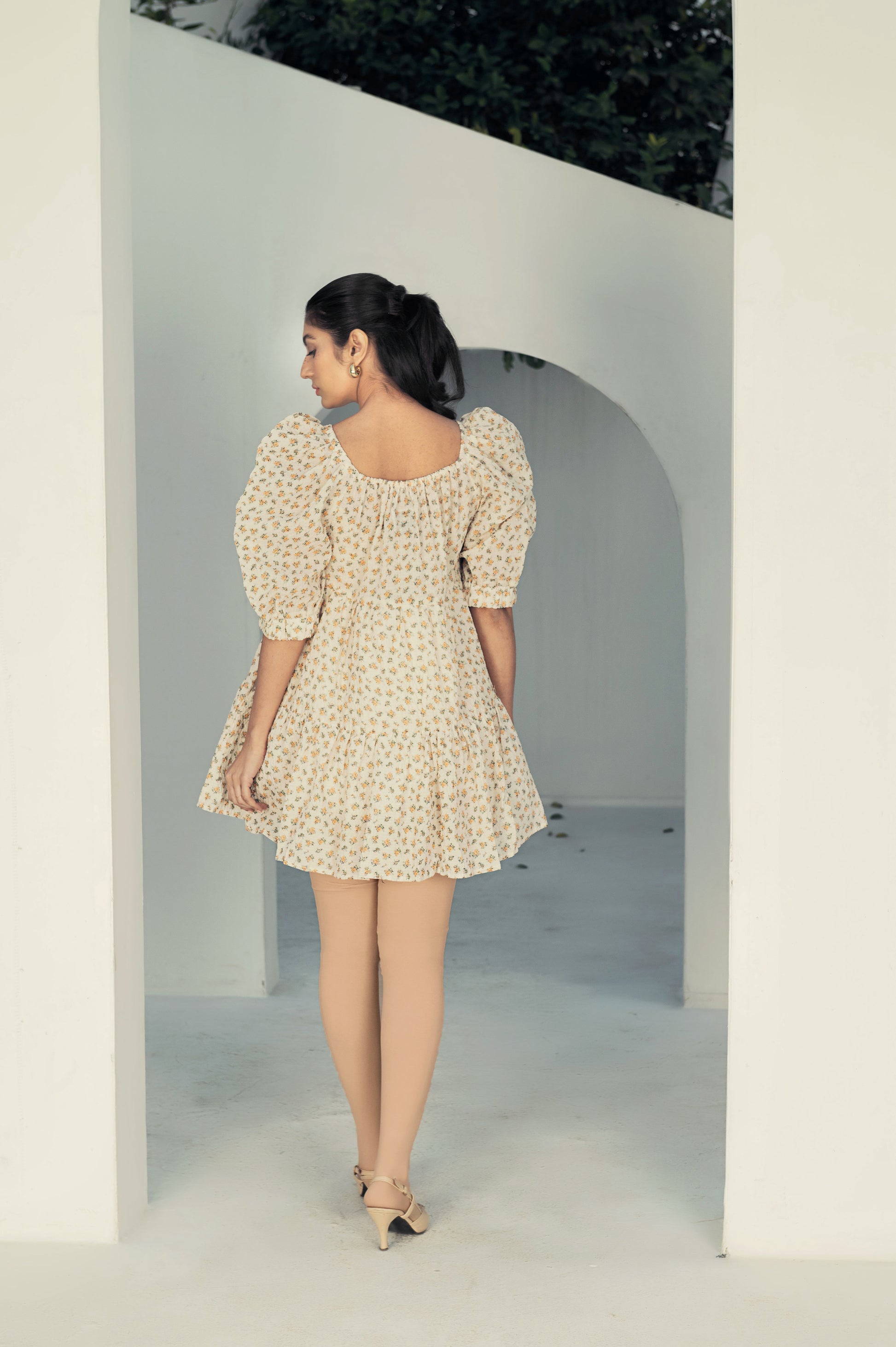 Elevate your style with White Lady. This luxury mini dress is crafted from crushed cotton, offering a refined and bold dandy look. The oversized fit, puffy seam details, and textured fabric create a dramatic silhouette that exudes elegance. Add a touch of perfection to your wardrobe.